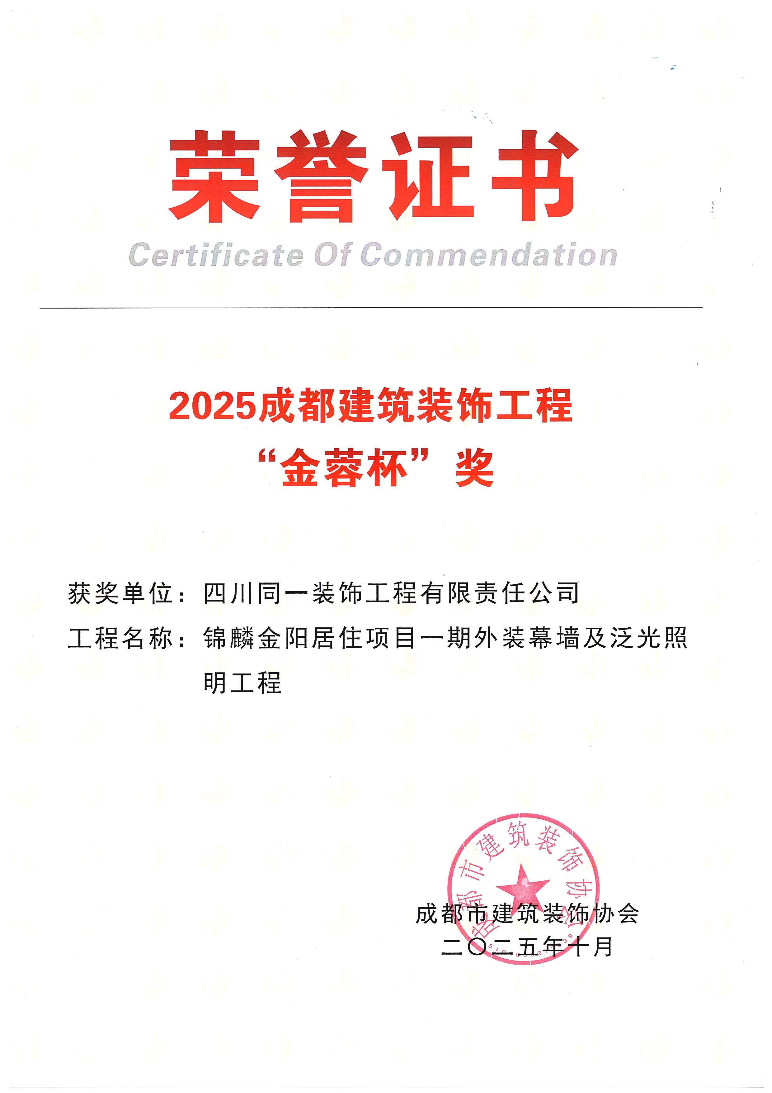 荣获2025年成都建筑装饰协会“金蓉杯”奖